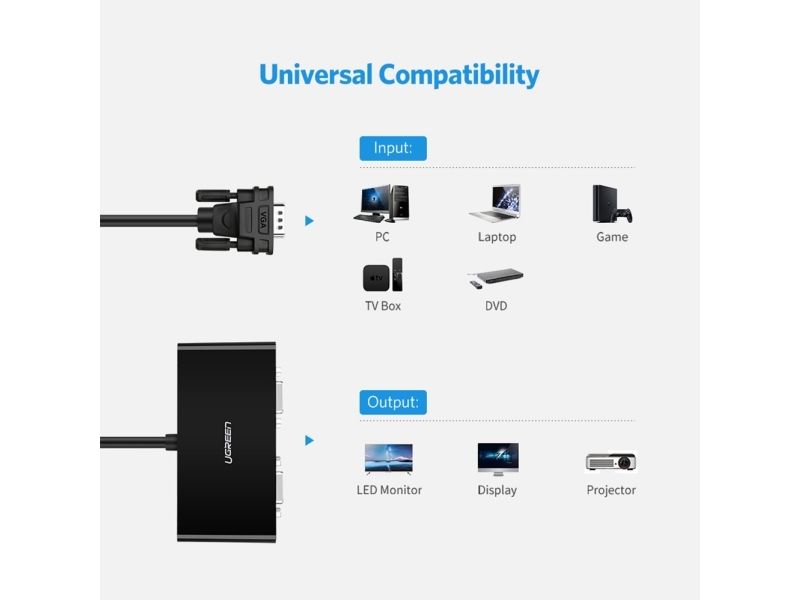 UGREEN 40254 VGA to 2x VGA video splitter - 1m (black)
