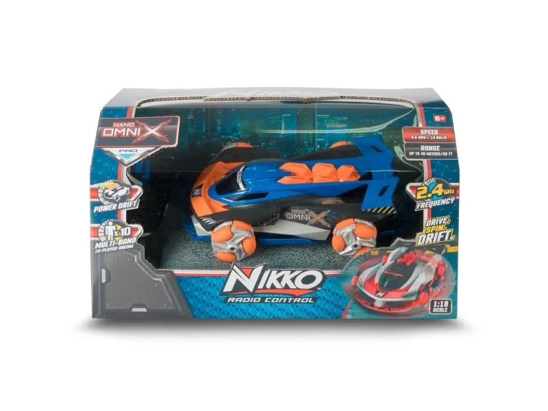 Kör, snurra och drifta! Med Nano Omni X får du uppleva extrem driftteknik och 360 graders snurrande som aldrig förr. Omni wheel-tekniken ger dig kontroll när du driver, glider och snurrar på kommando. Fordonet kan nå en topphastighet på 14 km i timmen. Räckvidd upp till 40 m. Från 6 år.