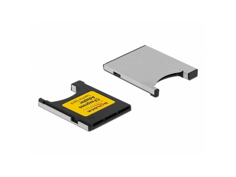 A CFexpress type A memory card can be inserted into the CFexpress adapter by Delock and used in a CFexpress type B slot of a device. Thus the adapter converts CFexpress memory cards from type A to type B.