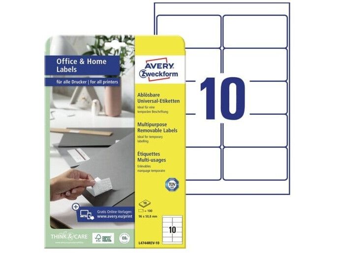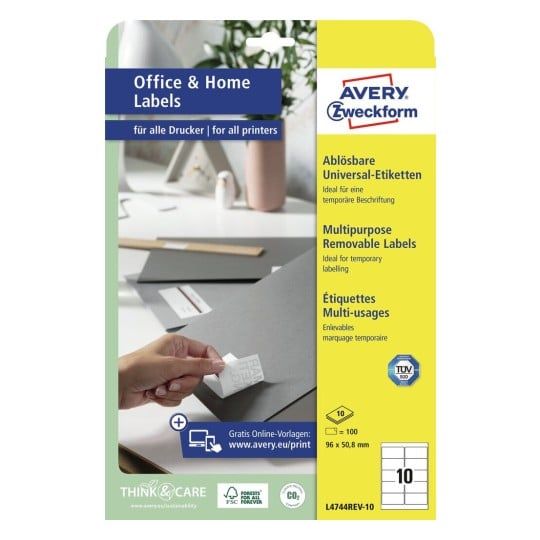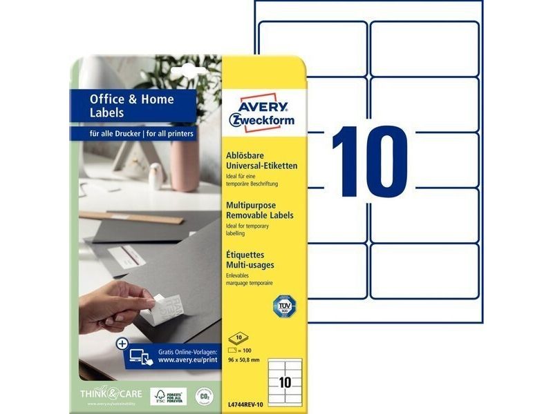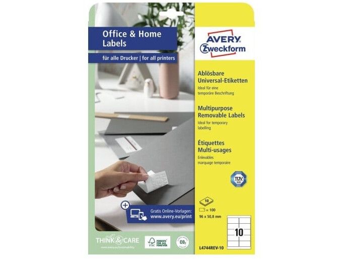 AVERY Zweckform universaletiketter 96 x 50,8 mm vit mångfaldig borttagbar med kant runtom FSC-certifierad 1 st (L4744REV-10)