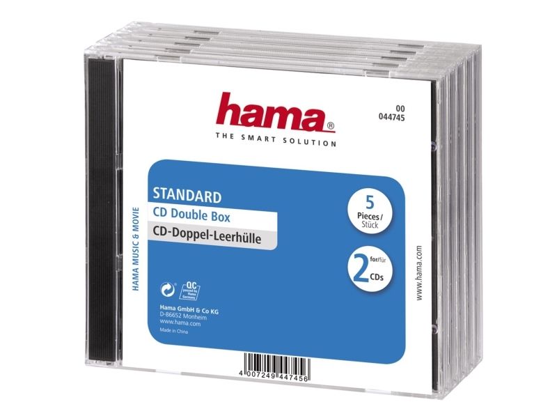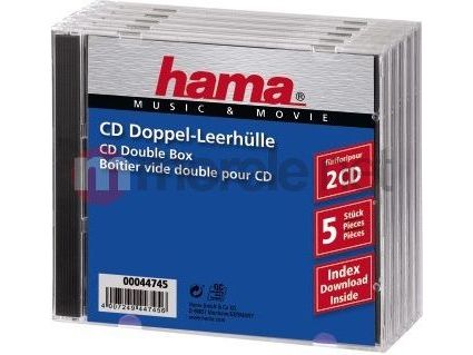 Hama CD Double Jewel Case Standard, Pack 5, 2 diskar, Transparent, 140 mm, 128 mm, 52 mm, 280 g