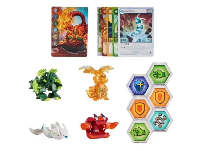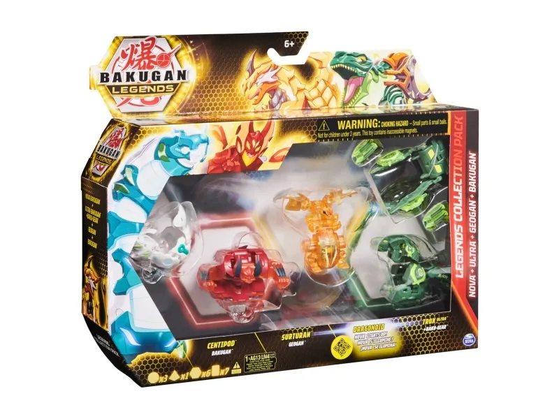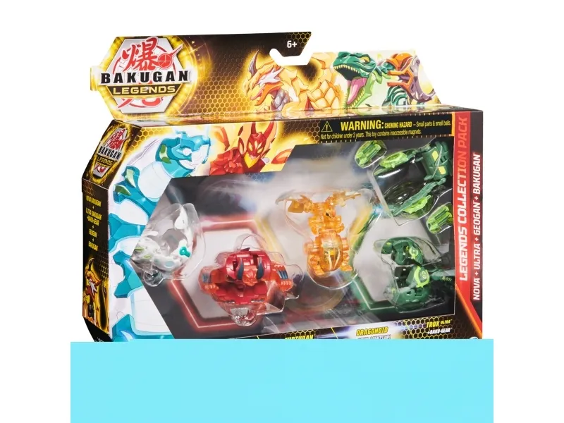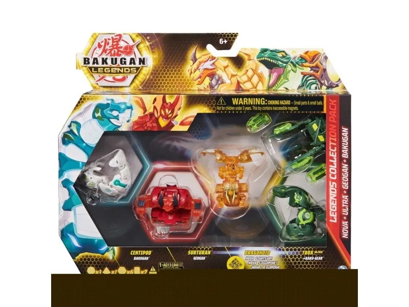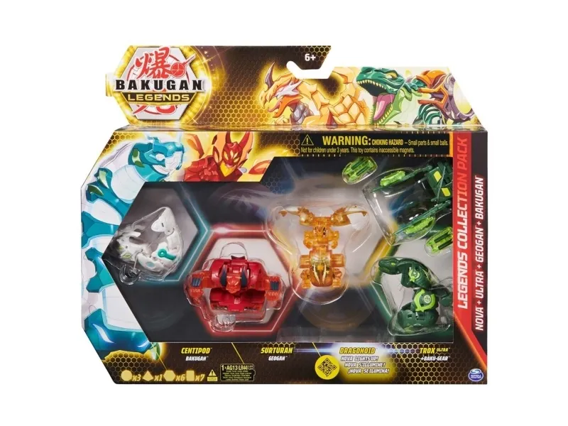 Bakugan Legends Collection Pack har allt du behöver för att börja strida direkt i förpackningen. Setet innehåller 4 Bakugan, samlarkaraktärer och färdighetskort, portalkort och mer. Din Bakugan-leksakssamling blev precis starkare än någonsin med Nova Bakugan som lyser. Se hur den lyser när den rullar över dina BakuCores (6 medföljer). Se hur Bakugan öppnas upp och förvandlas till häftiga actionfigurvarelser. Spela ut din Geogan under striderna och släpp loss en överraskningsattack för att besegra din motståndare. Variationen av mästare kommer att leverera otrolig åverkan i striden som aldrig förr. Använd de medföljande färdighetskorten för ännu fler sätt att leka och tjäna bonusar på Bakugan-stridsarenan. Lägg till alla Bakugan Legends-leksaker för flickor och pojkar från säsong 5 till din samling, inklusive Geogan och Nova Bakugan som lyser (alla säljs separat), för att bygga ihop ditt drömlag. Använd en Baku-tin (säljs separat) som perfekt leksaksförvaring eller en Bakugan-låda till alla dina häftiga Bakugan Battle Brawlers och kort. Samla på alla dina favoritkaraktärer från succéserien (på NETFLIX) och gå med i Bakugan-kampen med dina favoritsamlarobjekt och Bakugan-kortset. Ta dina strider till nästa nivå med helt nya Bakugan Legends-samlingen.