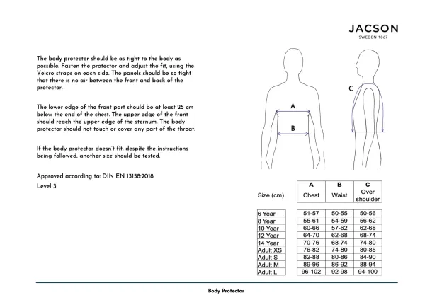 Om du är en ryttare som letar efter en säkerhetsväst som ger bästa möjliga comfort och passform samtidigt som den är EN13158:2018 nivå 3-märkt, så har du hittat rätt! Vår säkerhetsväst är designad för att ge bra rörelsefrihet tack vare separata paneler, och den har en dragkedja framtill, kardborre i sidor och på axlar för att ge en säker och bekväm passform. Västen finns i både svart och rosa, så du kan välja den färg som passar dig bäst. Dessutom är den lätt att hålla ren och torka av, så du kan använda den igen och igen utan problem.  Vår säkerhetsväst är CE-märkt enligt europeisk standard, EN 13158:2018, Nivå 3. Säkerhetsvästen uppfyller därmed kraven för att användas inom ridsport och vagnskörning, inga andra sporter.  Det är viktigt att säkerhetsvästen justeras korrekt och att den känns bekväm. Säkerhetsvästen ska sitta nära kroppen över lätta kläder. Ytterligare plagg, till exempel en jacka, bör sitta över säkerhetsvästen. Du kan justera säkerhetsvästens passform vid axlarna och i sidorna. Säkerhetsvästen ska helt täcka revbenen, men den ska inte vidröra sadeln eller låren då du sitter.Yttermaterial 100% nylon, foder 100% polyester.