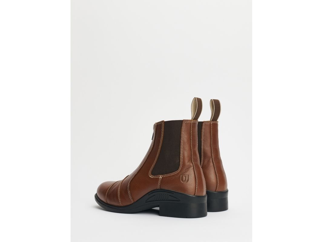 Snygg jodhpur i mjukt läder med hög komfort och halkfri sula. Dragkedja framtill och resår i sidan
