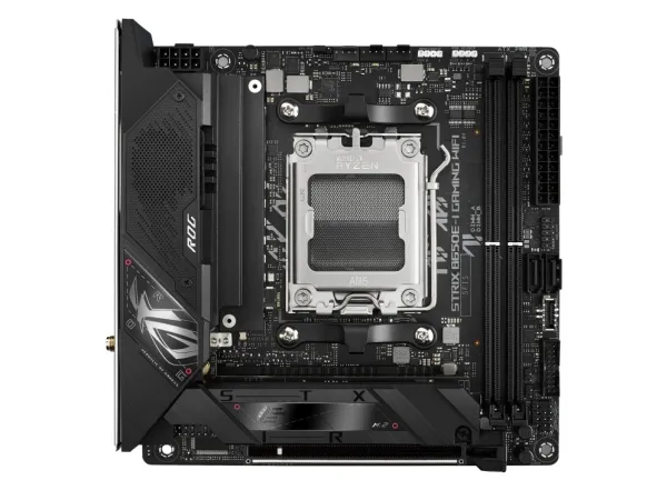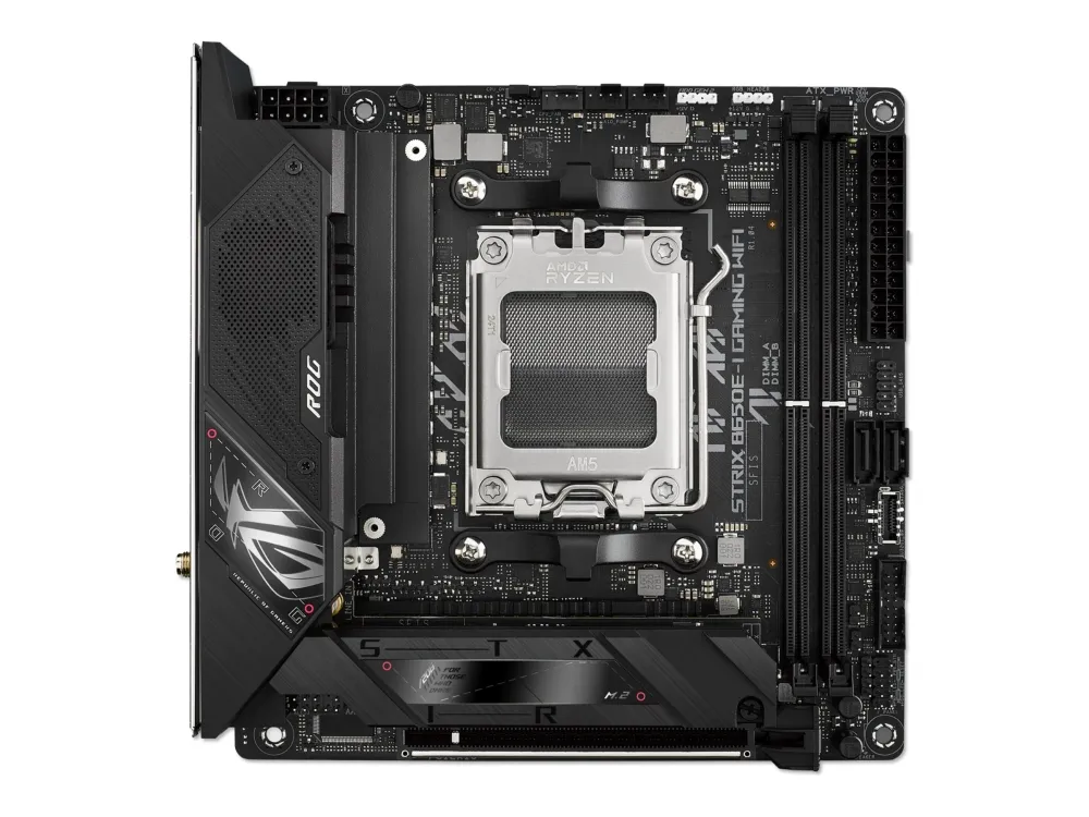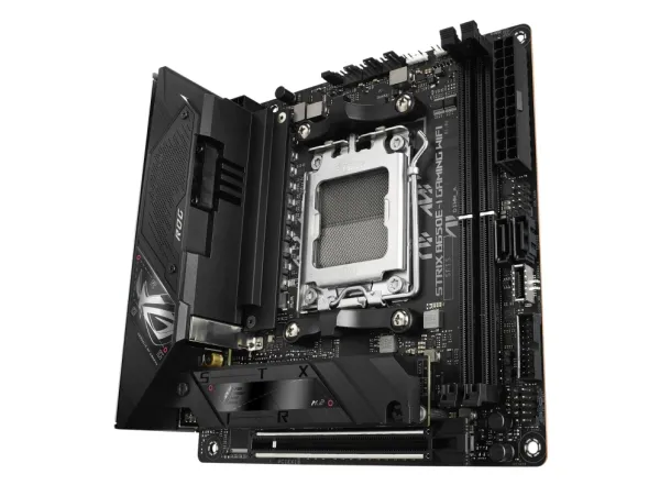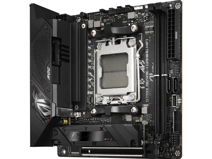 Don't be fooled by its flyweight frame; the Strix B650E-I packs walloping performance! With a jacked VRM and pumped with both DDR and PCIe 5, it's a perfect partner for Ryzen 7000, particularly in stealthy SFF builds.