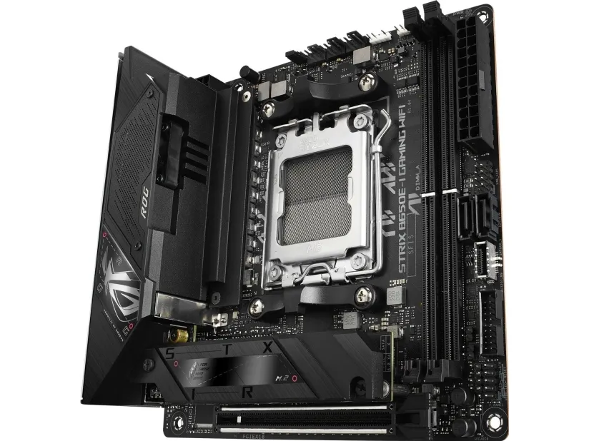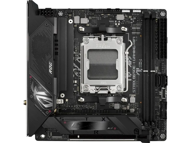 ASUS ROG Strix B650E-I Gaming WiFi - Moderkort - mini ITX - Socket AM5 - AMD B650 Chipuppsättning - USB-C 3.2 Gen 2x2, USB-C 3.2 Gen2, USB 3.2 Gen 2, USB 3.2 Gen 1 - 2.5 Gigabit LAN, Wi-Fi 6E - inbyggda grafiken (CPU krävs) - HD-ljud (8 kanaler)