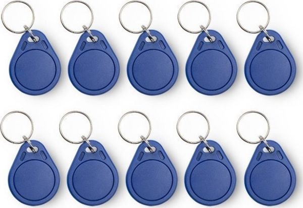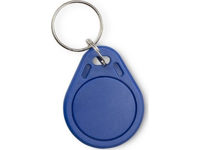 Proximity key fob compatible with 13.56 MHz Mifare readers. Used for unlocking access code security. Each key fob is protected by an individual code read by the reader when the key fob comes within its range. The product is characterized by high mechanical strength.