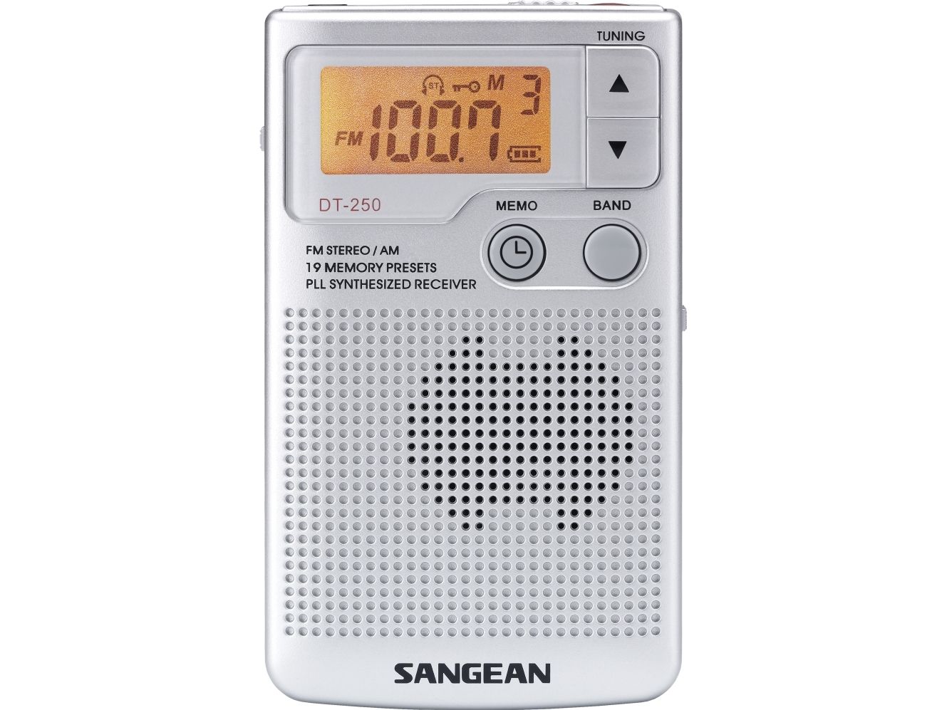 Sangean DT-250, AM,FM,MW, 87,5 - 108 Mhz, 520 - 1710 kHz, 4 ohm (O), 3,49 cm (1.38"), Sølv
