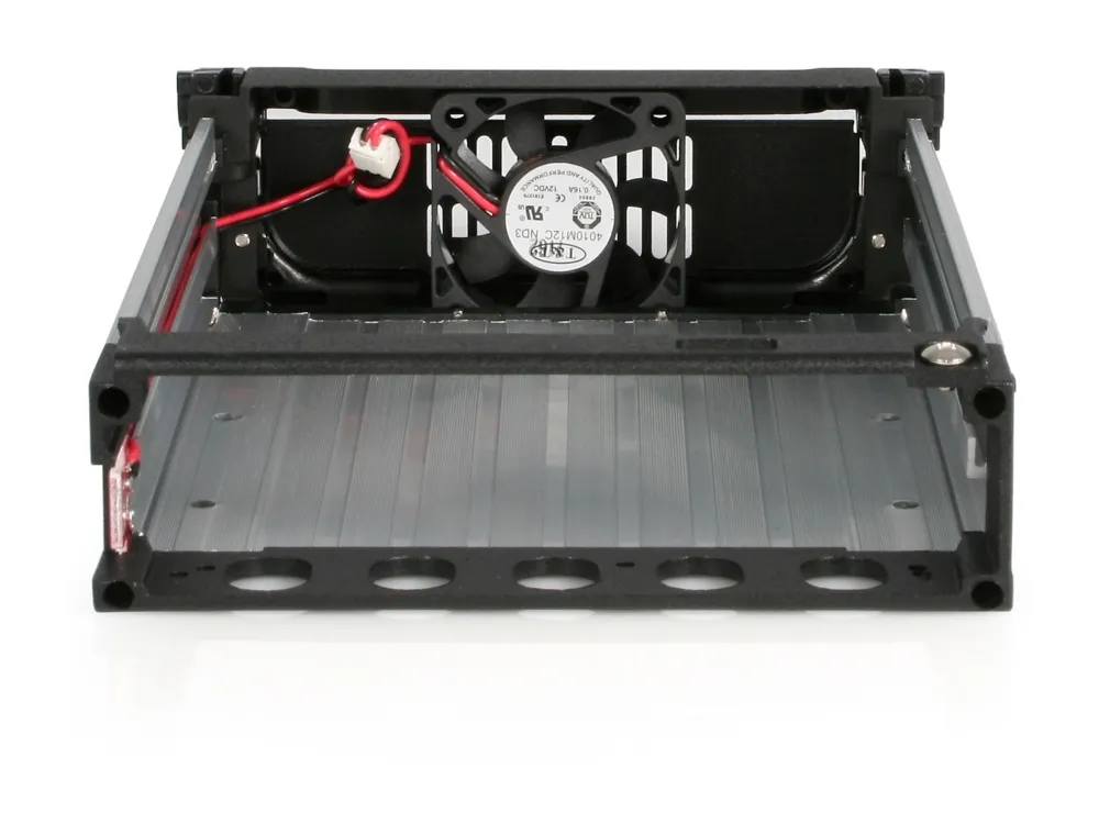 Installera helt enkelt enhetsfacket i ett 5,25-tums fack på värddatorn och montera sedan en 3,5-tums SATA-hårddisk i den (avtagbara) caddyn. Att ansluta SATA-hårddisken till datorn är lika enkelt som att sätta in caddyn i drivfacket, som kan låsas för att förhindra obehörig borttagning av enheten. Med kullagerfläkt på frontpanelen, aluminiumkonstruktion och 25K insättningsklassning.