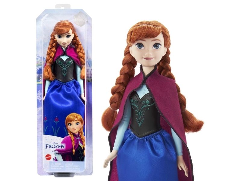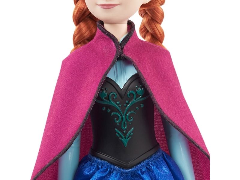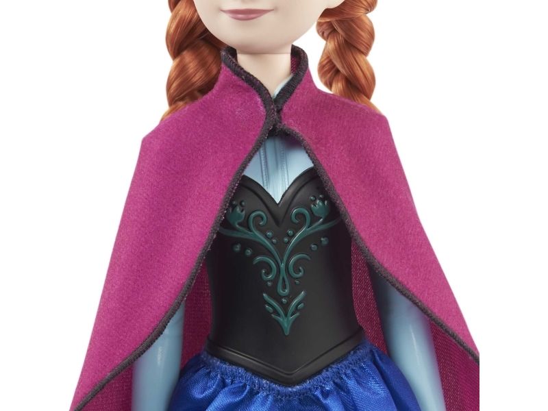 Möt Anna-dockan, inspirerad av den orädda och bestämda hjältinnan från Disneys Frost! Den här ställbara modedockan är klädd i sin välkända resestil, med accessoarer som skor, mjuk cape och kjol. Anna-dockan i samma karakteristiska outfit som i filmen, är redo att ge sig ut på en resa för att rädda kungariket! Dockan kan inte stå utan hjälp. Färger och dekorationer kan variera.