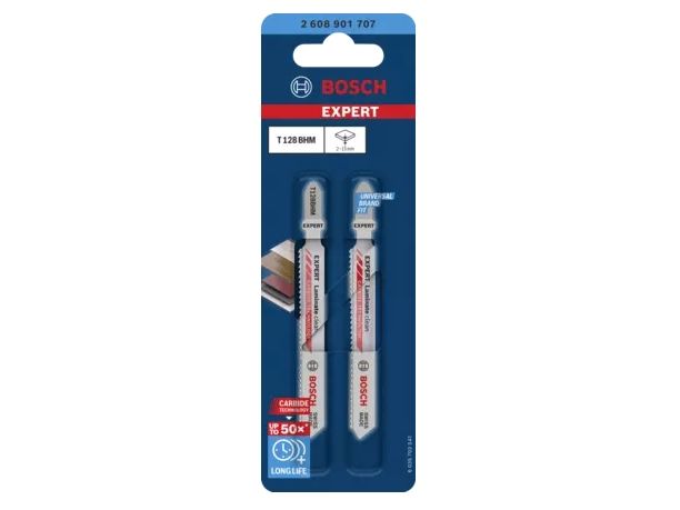 Bosch T128BHM, Figursågblad, Laminat, Gipsskivor, Polyvinylklorid (PVC), Karbid, Rostfritt stål, 1,8 mm, 1,5 cm