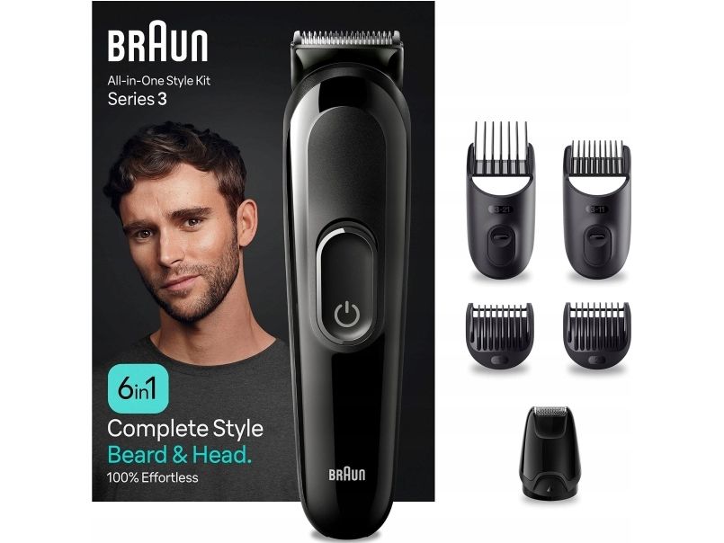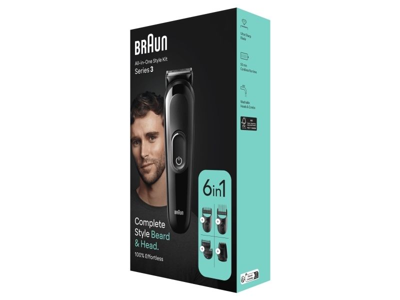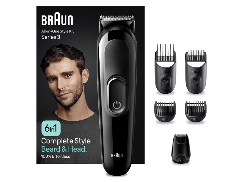 The Braun All-in-One Style Kit 3 offers versatility for all personal grooming needs. This trimmer features multiple comb attachments ranging from 1 mm to 21 mm, allowing for precise styling of hair and beard. Its cordless design and 50 minutes of operating autonomy provide flexibility and convenience, making it perfect for on-the-go grooming.