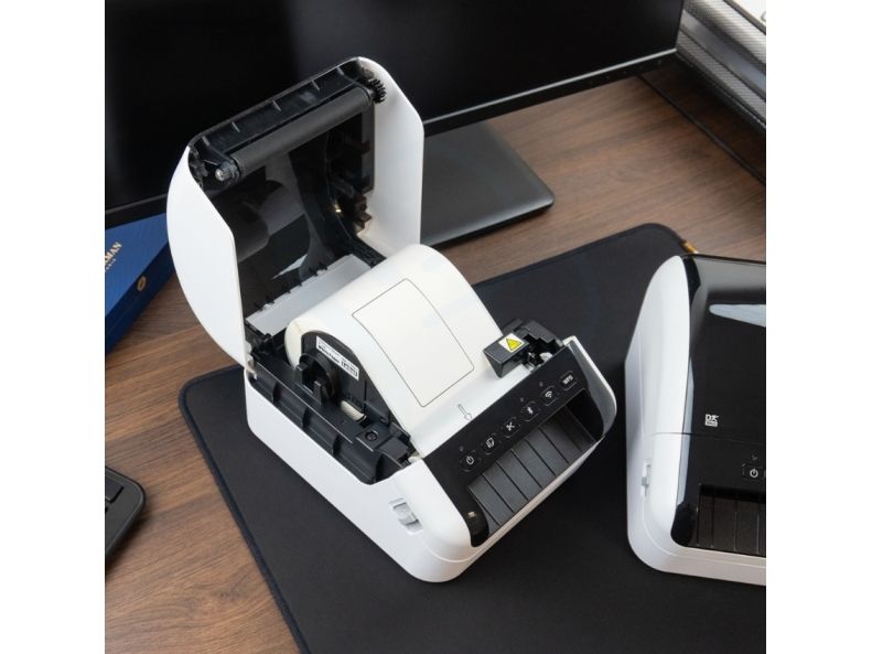 Denna brett format etikettskrivare har en utskriftsbredd på 4 tum (101,6 mm) - för att erbjuda maximal kompatibilitet med olika programvarupaket för fraktmärken. Med USB, Ethernet, Wi-Fi och Bluetooth kan du välja att skriva ut etiketter från din PC, Mac, smartphone eller surfplatta, beroende på vilket som är mest praktiskt. Med Apple MFI-certifiering och AirPrint täcks alla dina anslutningsalternativ.