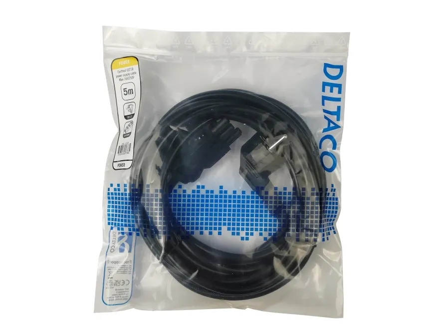 Deltaco GST18 power cable, CEE 7/7 - GST18 female, black, 5m, 5 m, CEE7/7, GST18i3, 250 V, 16 A