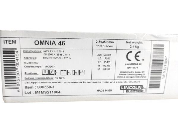 Lincoln Electric rutil-elektrod 2,5 mm 350 mm 2,1 kg OMNIA 46 LINCOLN ELECTRIC