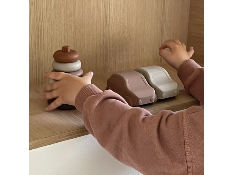 Mushie nuuroo - 2 leksaksbilar i silikon Cobblestone