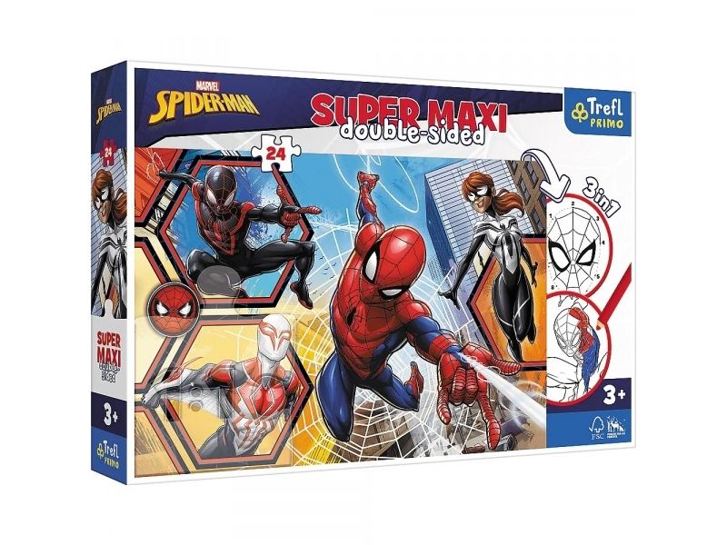 Trefl dubbelsidigt pussel 24 bitar Super Maxi Spiderman i aktion 3-i-1