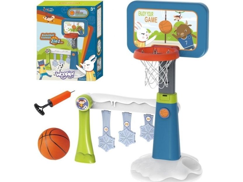 Woopie WOOPIE 2-i-1 set basketboll, mål till fotboll + boll + pump