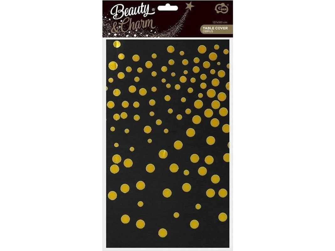 GoDan bordsduk i folie B&C gulsvarta prickar, svart 137x183 cm