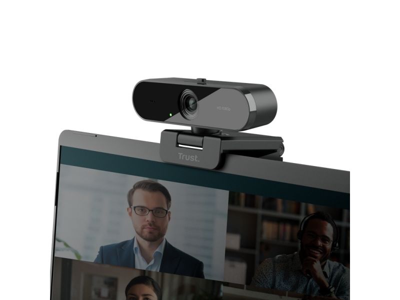 1080p Full HD webcam with wide-angle lens, long-distance microphone and privacy filter.