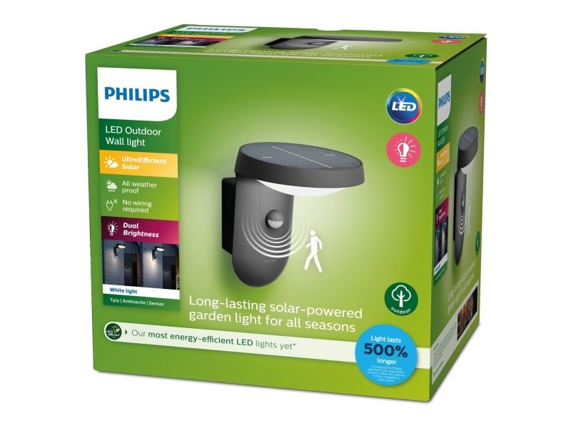 Philips Tyla vägglampa 1,2 W, Väggbelysning för utomhusbruk, Svart, IP44, Fasad, Modern, Trädgård
