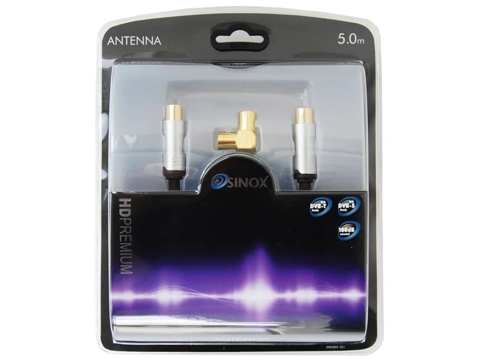 Sinox HD Premium - Antennkabel - 5 m - skärmad - 90° vridbar kontakt