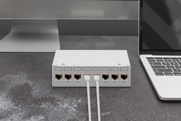DIGITUS - Patch-panel - modular - väggmontering, bord - skärmad - RJ-45 X 8 - ljusgrå, RAL 7035 - 1U - 10"