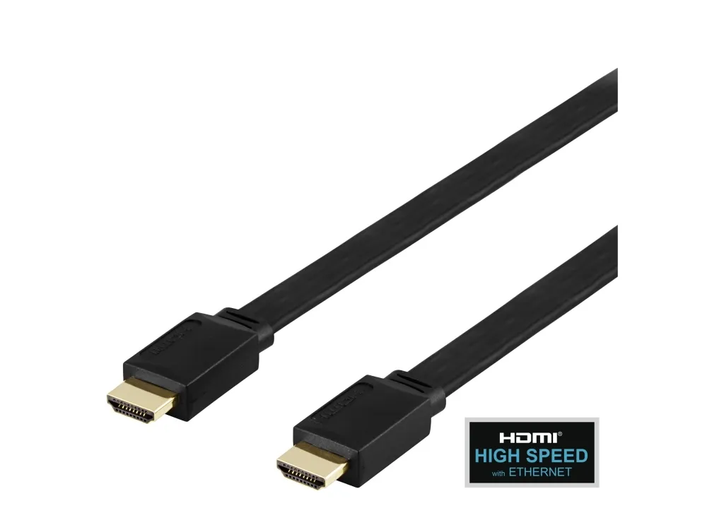 DELTACO - Hög hastighet - HDMI-kabel med Ethernet - HDMI hane till HDMI hane - 1 m - svart - platt, 4K30 Hz (3840 x 2160) stöd, upp till 10,2 Gbps dataöverföringshastighet