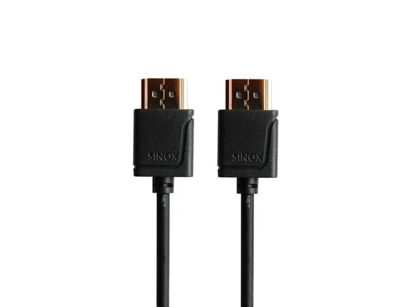 The Sinox HDMI thin high-speed with Ethernet HDMI cable has an ultra-thin and flexible design that provides an exceptionally sharp bend radius for easy routing in tight spaces.