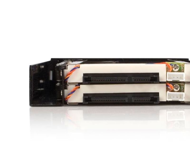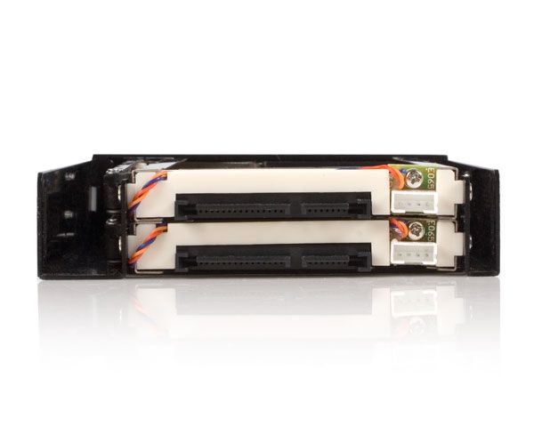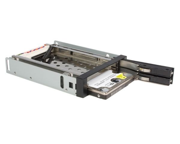 Med hot-swap-låda för 3,5 tums SATA-hårddisk kan du installera två 2,5 tums SATA hårddiskar (HDD) eller SSD-enheter i ett ledigt/oanvänt 3,5 tums diskettenhetsfack.