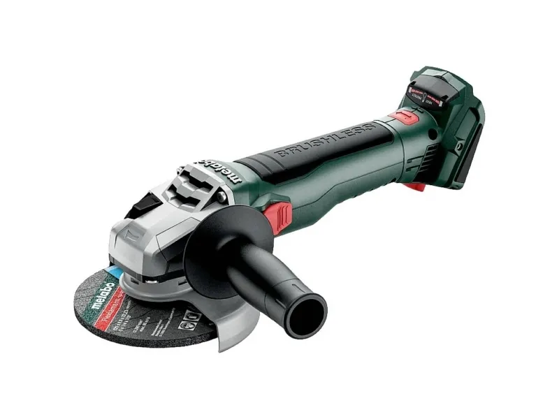 Metabo 613052850. Product colour: Black, Green, Motor type: Brushless motor, Power protection features: Overload. Grinding disc diameter: 12.5 cm, Idle speed (max): 10000 RPM, Cutting depth (max): 2.7 cm. Power source: Battery, Battery technology: Lithium Polymer (LiPo), Battery voltage: 18 V. Weight: 1.8 kg