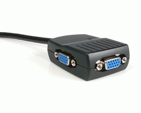 Den här VGA-videosplittern med 2 portar gör det möjligt för datorn att visa VGA-videor på två skärmar samtidigt.