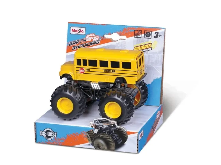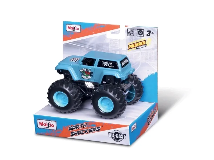 The Maisto Eart Shockers is big die-cast monster trucks. All with detailed chassis with long travel working spring suspension and powerfull pull-back motor with gigant soft tires.