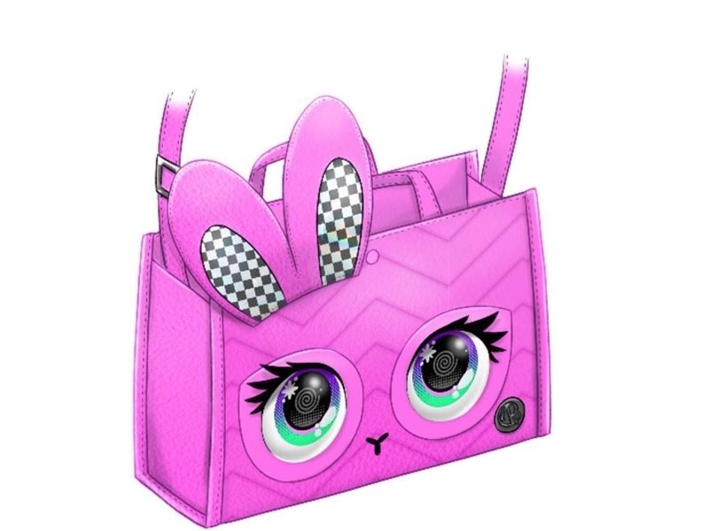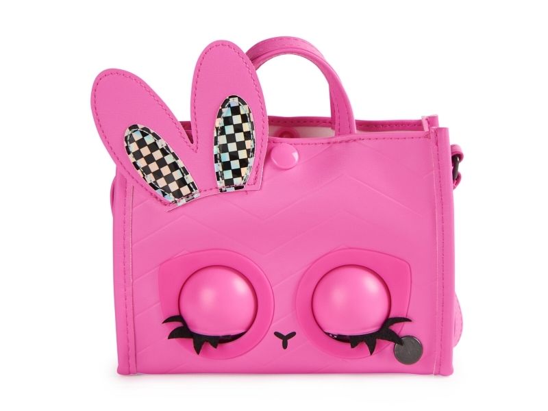 Bring your look to life with Purse Pets Quilted QTs purses for girls! These interactive tote bags (perfect girls gifts) are packed with purse-onality. They respond to touch, really blink and have over 30 new sounds and reactions! Holly Hops features pink chevron fabric, holographic checkered bunny ears, pop-art inspired eyes and a snap closure. With double straps, carry Holly Hops with the handles or extend the longer strap up to 40 in. to wear as a shoulder bag or cross body bag! On-the-go, touch her head for cute sounds and make her blink. Hold her forehead and she’ll blow a kiss! Push the insignia to unlock more ways to play. In Magic Mode, play games and dance to her beats! Have a staring contest with your new BFF and rock your runway look to the music – she’ll cheer on! Customize with Luxey Charms (sold separately) for the ultimate Purse Pets mashup! Measures approximately 5 in. (H) x 6.5 in. (W) x 2.4 in. (D); 3 AAA batteries included. Purse Pets interactive toys for kids are great birthday gifts, Christmas gifts, stocking stuffers or gifts for girls for any occasion. Express your style with Purse Pets Holly Hops!