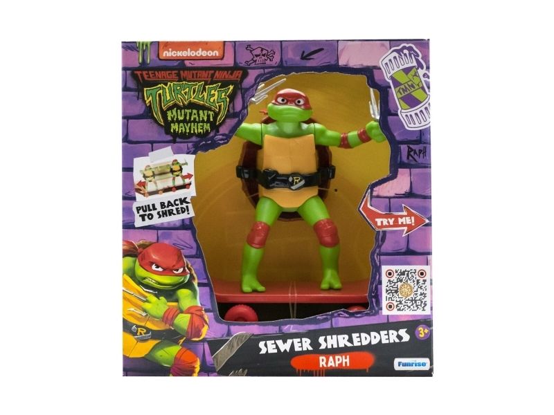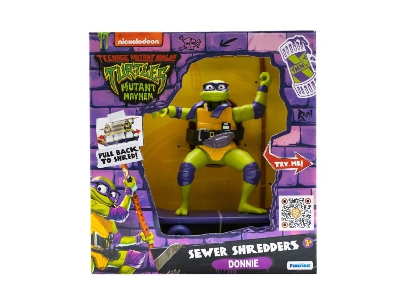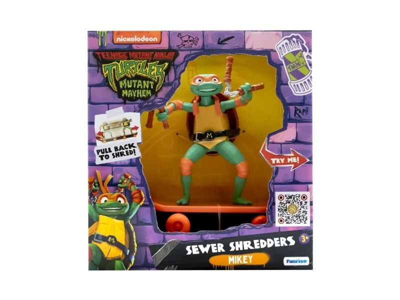 Teenage Mutant Ninja Turtles Sewer Shredders är 12 cm skate-leksaker byggda för att slåss och åka! Klassiskt utformad med Teenage Mutant Ninja Turtles som håller i sina ikoniska vapen. Dra Ninja Turteln bakåt, släpp den och se den åka! Tryck på knappen på sköldpaddornas halvsköldar för att starta stridsläget! Samla alla 4 figurerna!