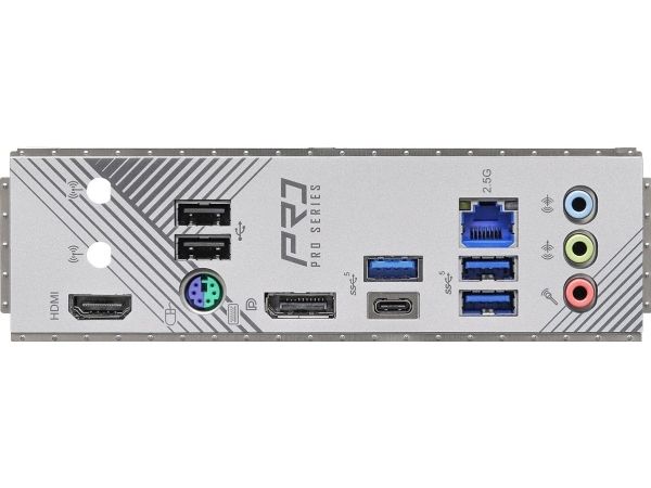 1 x PS/2-tangentbord/mus 1 x HDMI 1 x DisplayPort 1 x USB-C 3.2 Gen 1 3 x USB 3.2 Gen 1 2 x USB 2.0 1 x LAN (2.5Gigabit Ethernet) 1 x mikrofon - mini-jack 1 x ljudingång - mini-jack 1 x ljudutgång - mini-jack