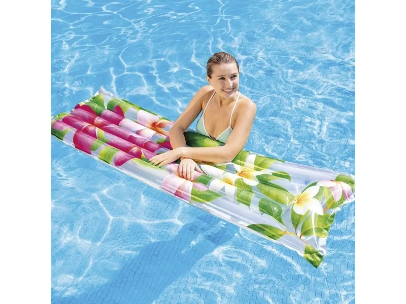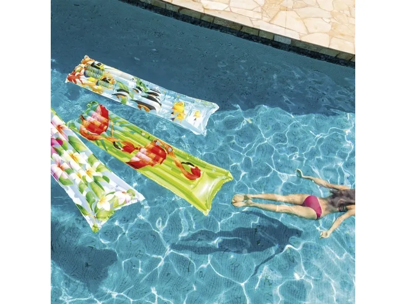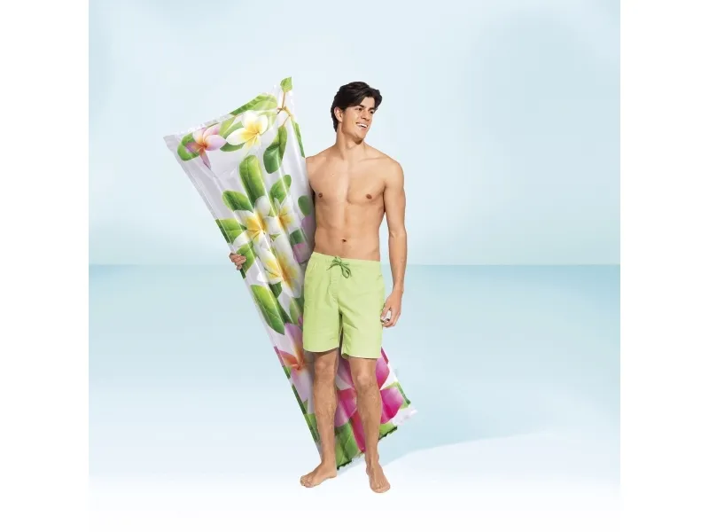 Drømmer du om Hawaii? Disse luftmadrasser med 2 luftkamre (183x69 cm.) er perfekte til både haven, stranden og poolen. Findes i 3 friske farverige designs med store Hawaii-motiver.