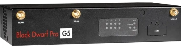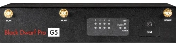 Securepoint Black Dwarf Pro G5 VPN. Firewall throughput: 2.83 Gbit/s, VPN throughput: 0.42 Gbit/s. TLS interception: 900 MB/s. Wi-Fi standards: Wi-Fi 4 (802.11n), Wi-Fi 5 (802.11ac), Number of users: 15 user(s), Wi-Fi band: Dual-band (2.4 GHz / 5 GHz). Security algorithms: AES. Connectivity technology: Wired & Wireless, Ethernet LAN data rates: 1000 Mbit/s