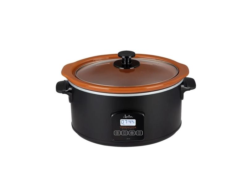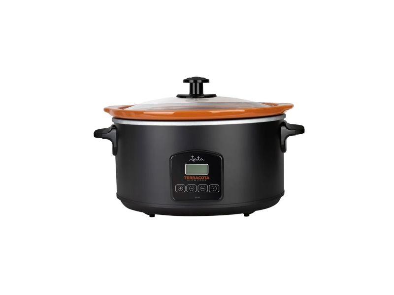 With the digital slow cooker you can easily prepare all kinds of dishes and in a healthy and traditional way JATA JEOL2145. Power consumption (typical): 210 W, AC input voltage: 230 V. Control type: Buttons. Product colour: Black, Terracotta, Lid material: Glass, Bowl material: Ceramic. Package width: 810 mm, Package depth: 315 mm, Package height: 300 mm