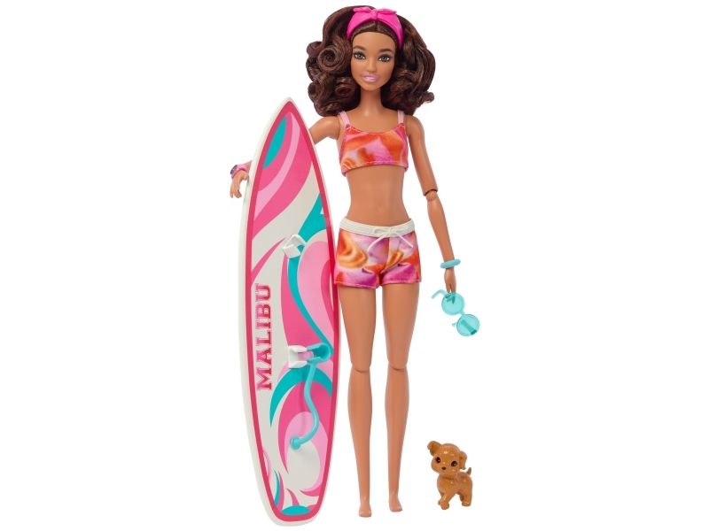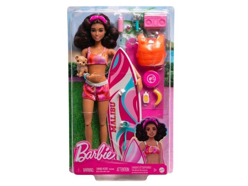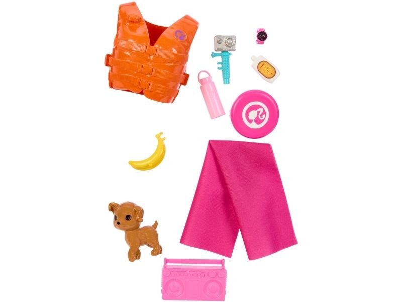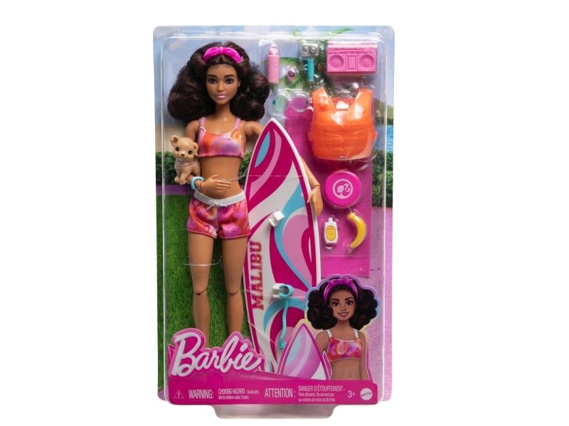 Mattel strand Barbie docka (brunett) + tillbehör HPL69