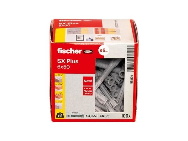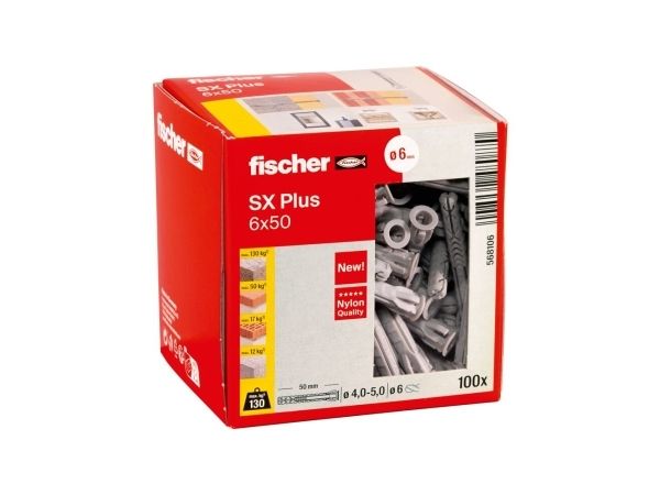 fischer 568106 expanderplugg autoklavporbetong murtegel betong gipsfiberskivor murverk nylon grå 6 mm