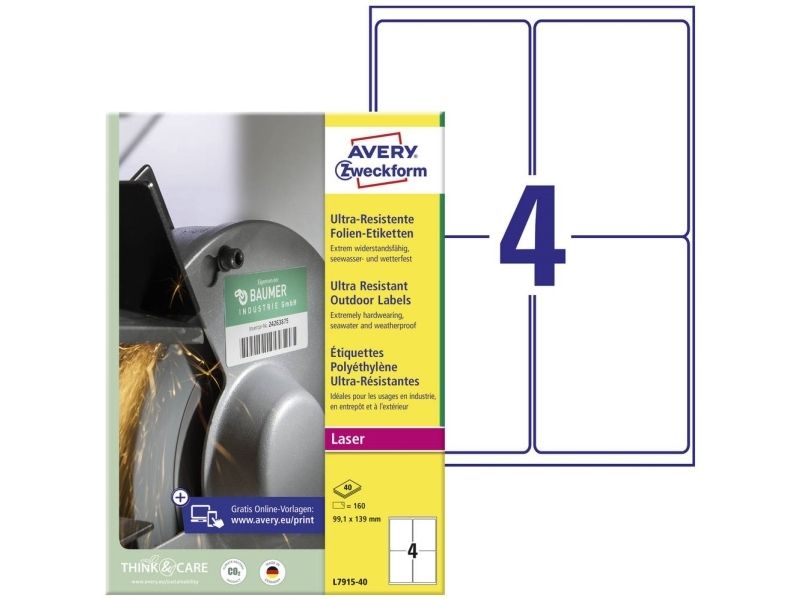 AVERY Zweckform Ultra-Resist. folieetiketter 99,1 x 139 mm färg: vit extremt tåliga särskilt starka – 1 st (L7915-40)