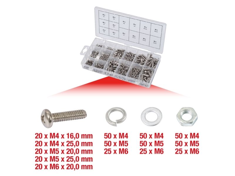 KS Tools 970.0510, DIN 555, DIN 7985, DIN 126, DIN 127, 590 g, 475 styck