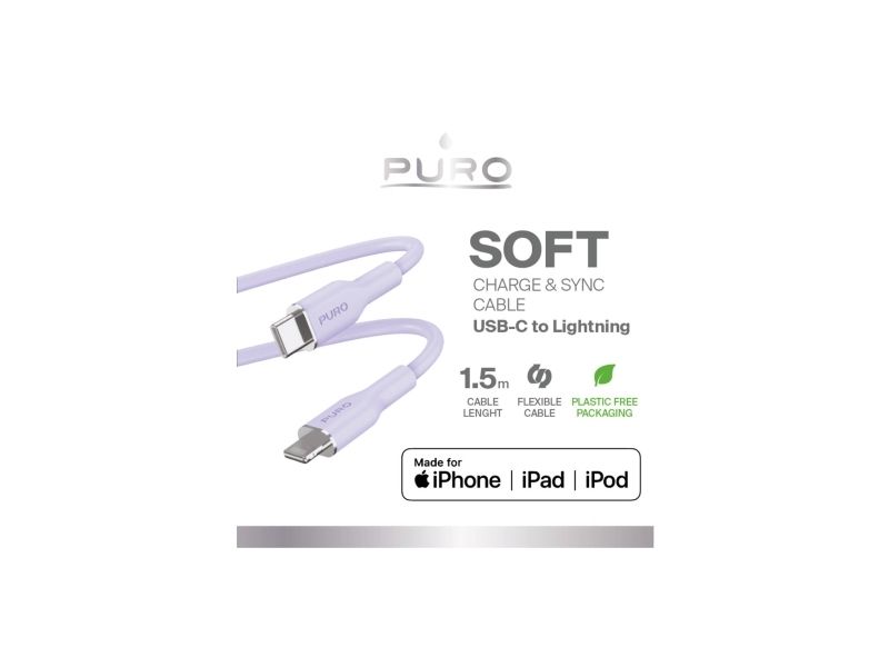 PURO Soft USB-C till Lightning ström- och datakabel, 1,5 m