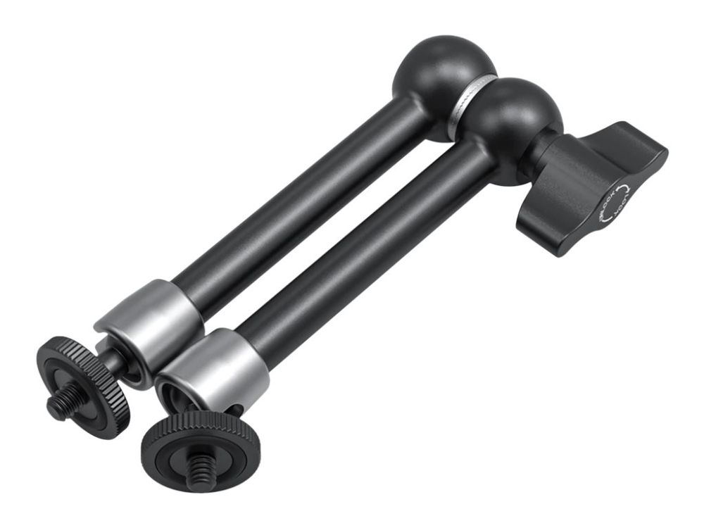 The articulating arm from SmallRig provides flexible positioning for various accessories. Constructed from durable aluminum alloy, stainless steel, and steel, this accessory ensures longevity and reliability in various shooting environments. With two included 1/4"-20 screws and two ball heads, it offers a versatile platform for attaching different devices, allowing users to customize setups according to their needs.