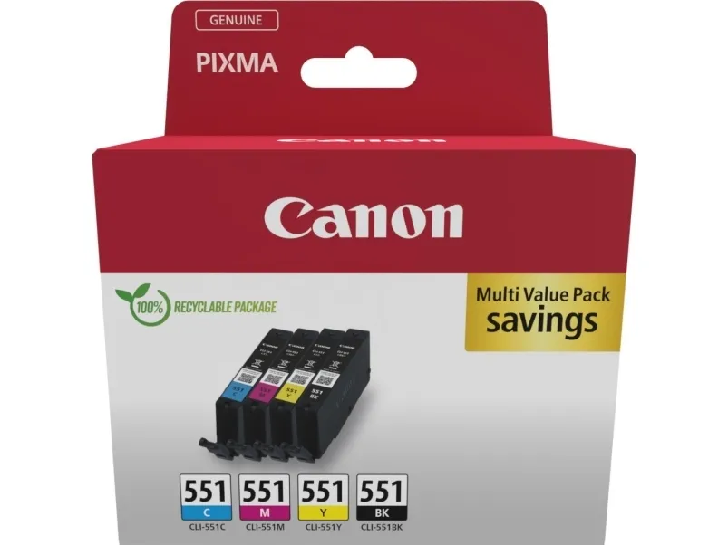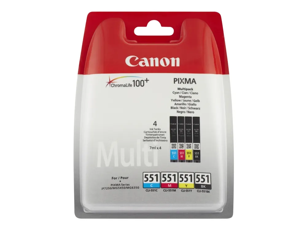 Canon CLI-551 C/M/Y/BK Multipack - 4-pack - 7 ml - svart, cyan, magenta, gul - original - hängande låda - bläcktank - för PIXMA iP7250, iP8750, iX6850, MG5550, MG5650, MG6450, MG6650, MG7150, MG7550, MX725, MX925