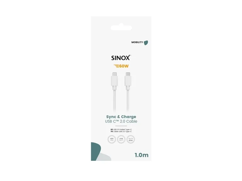 Sinox USB-C-kablet giver pålidelig opladning og dataoverførsel til dine enheder. Det er holdbart og nemt at bruge og er den perfekte hverdagsløsning til alle dine USB-C-gadgets.