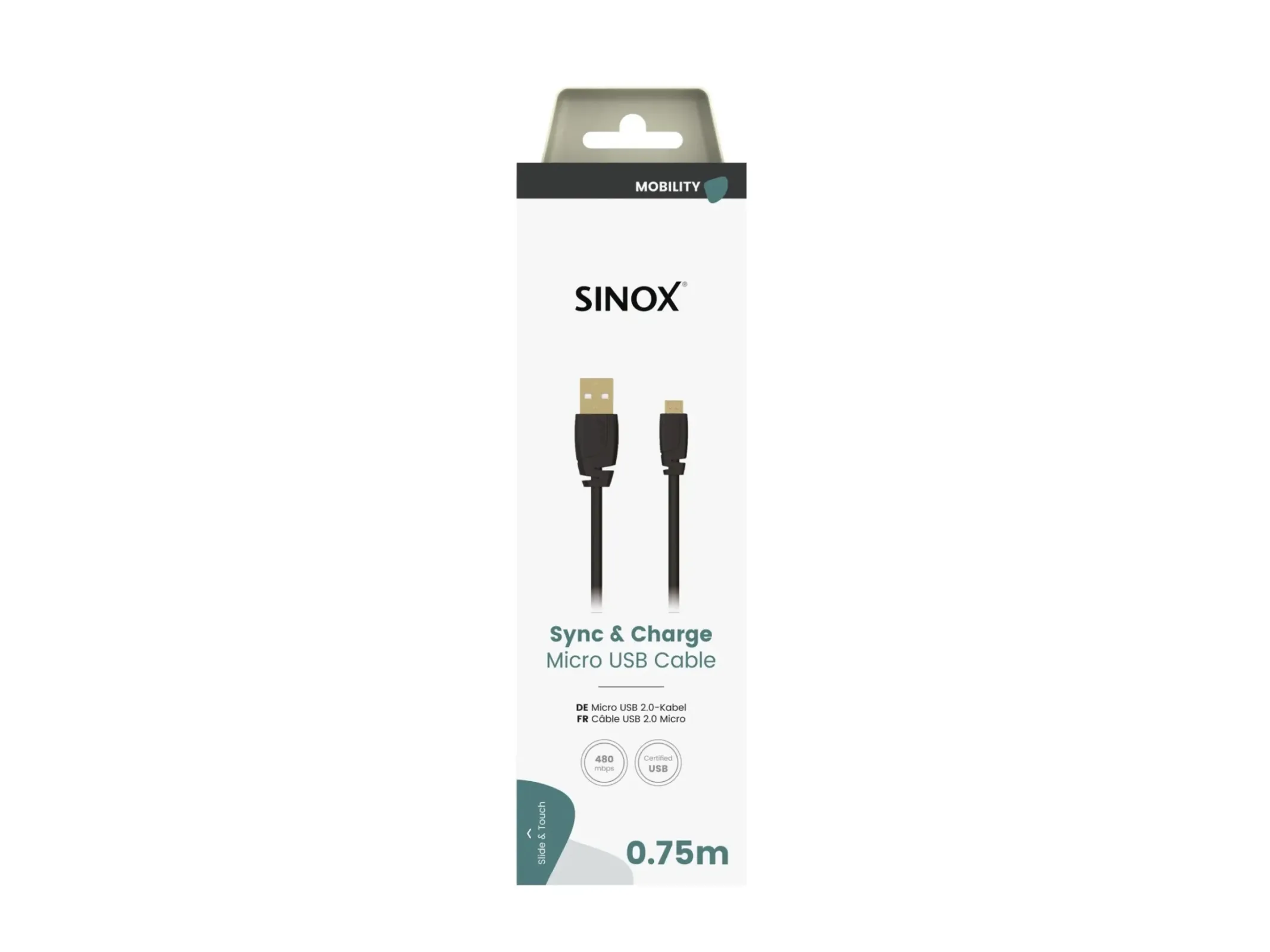 Sinox Micro USB kabel til at oplade og synkronisere din Android® mobiltelefon.