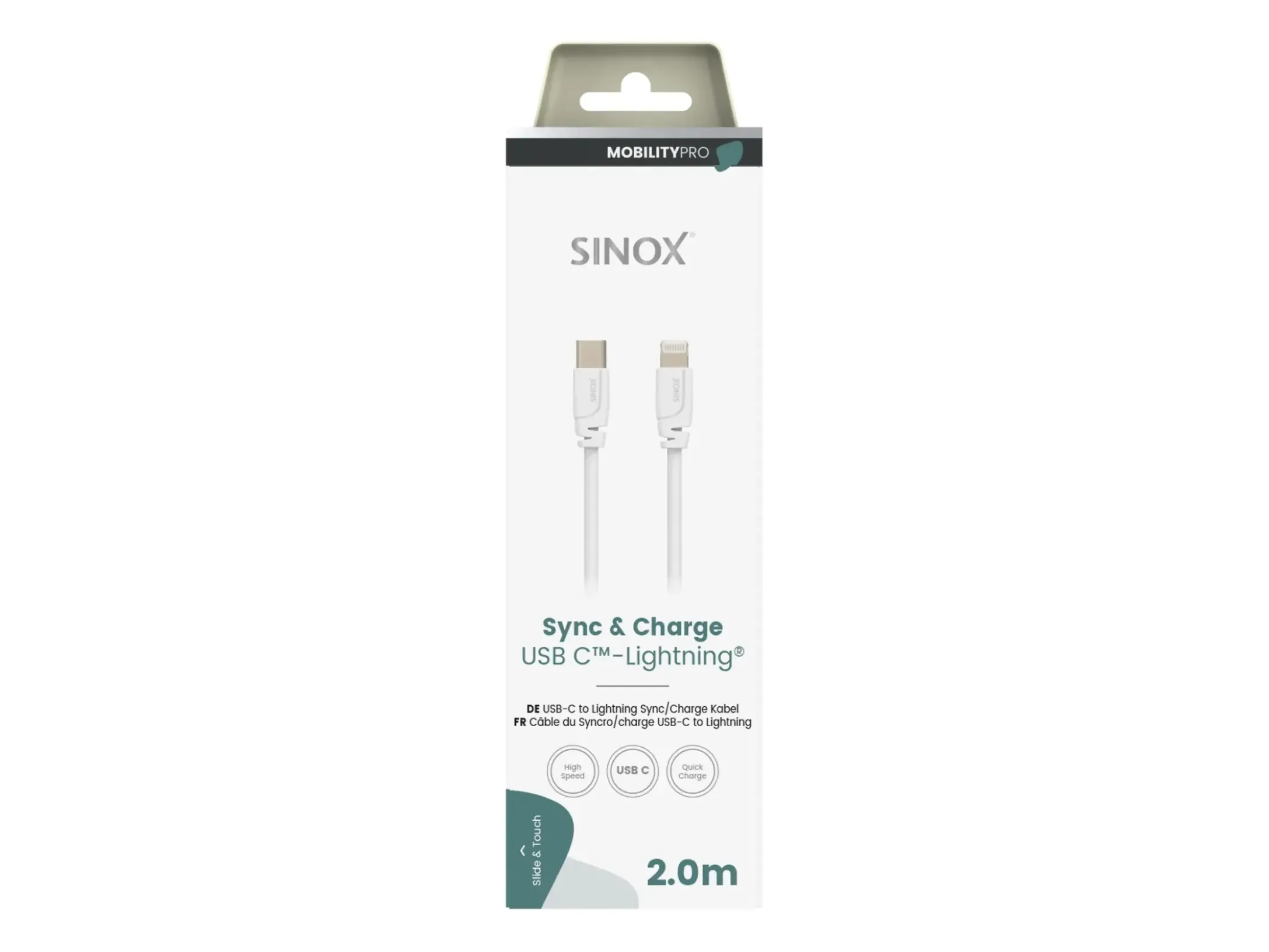 Sinox SXI04652, 2 m, Lightning, USB C, Hankontakt, Hankontakt, Vit