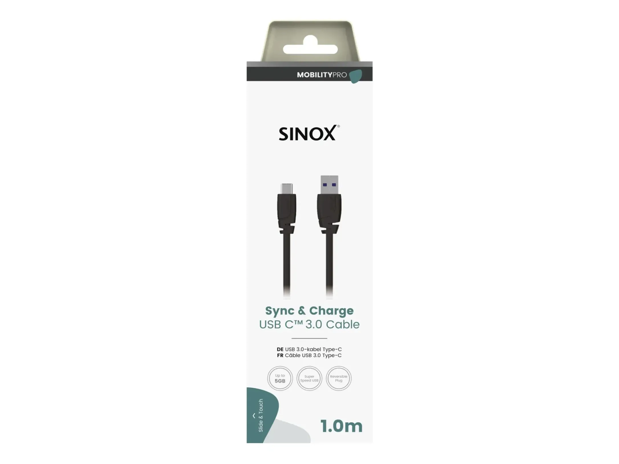 Sinox SXI05061, 1 m, USB C, USB A, USB 3.2 Gen 1 (3.1 Gen 1), 5 Gbit/s, Svart